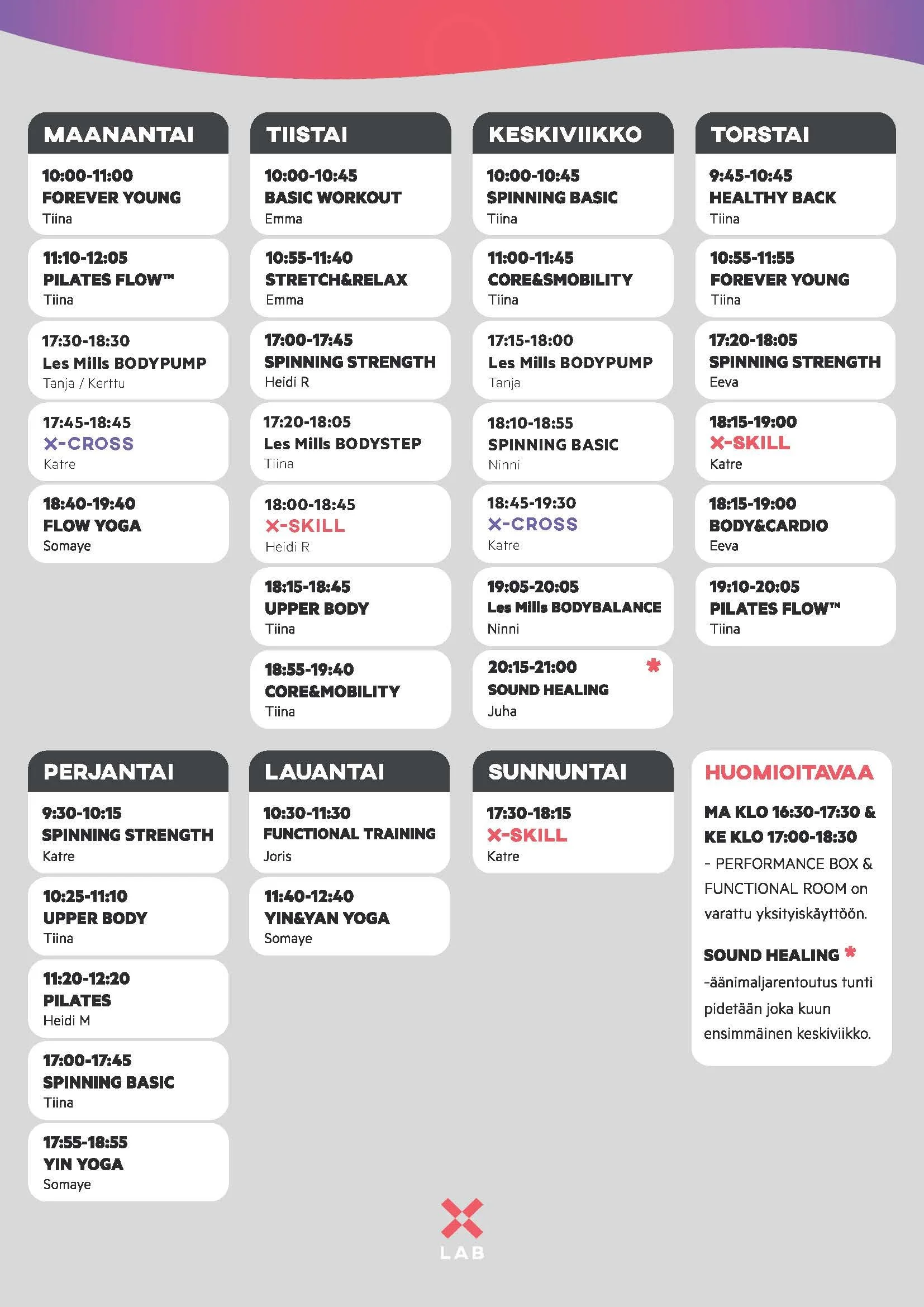 VARAA PAIKKA TUNNILTA (vaatii kirjautumistunnukset) Tuntikuvaukset Ryhmäliikunta-aikataulu 1.-21.12.2025 Ryhmäliikunta-aikataulu 22.12.-6.1.